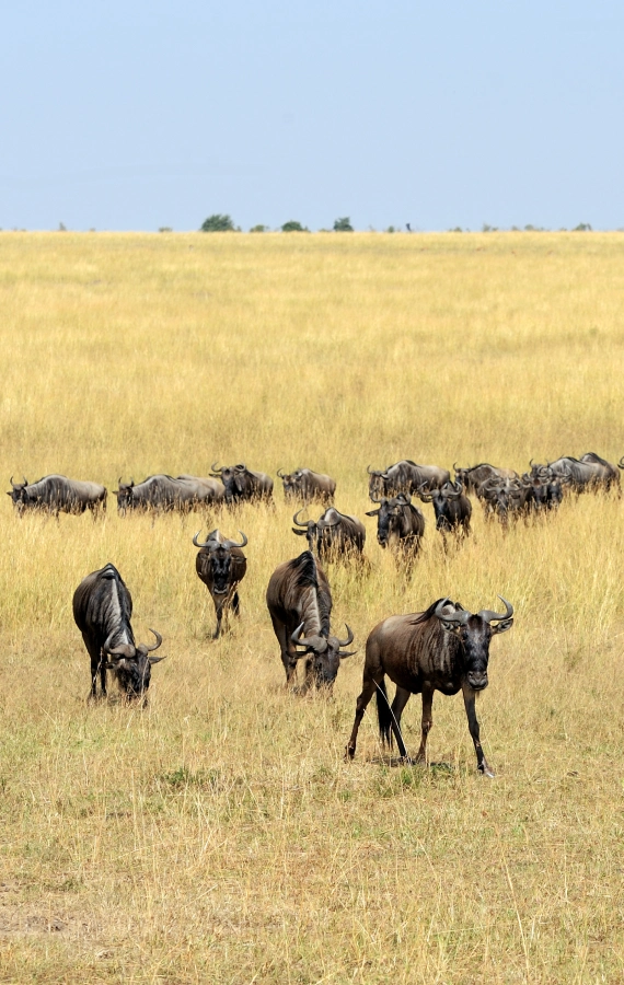 Watching vast migrating herds sweep across the golden Serengeti grasslands at sunrise.