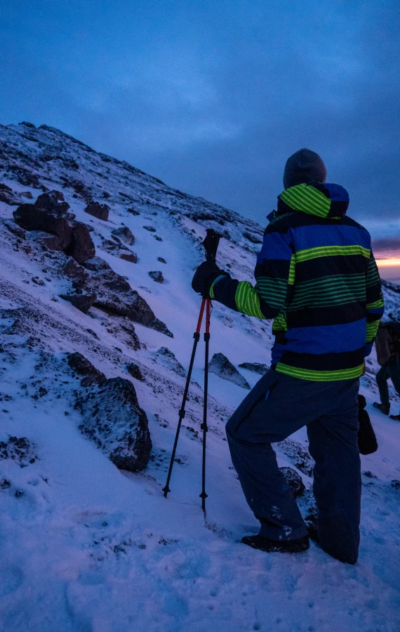 Climbing night slopes under stars toward the highest point in Africa