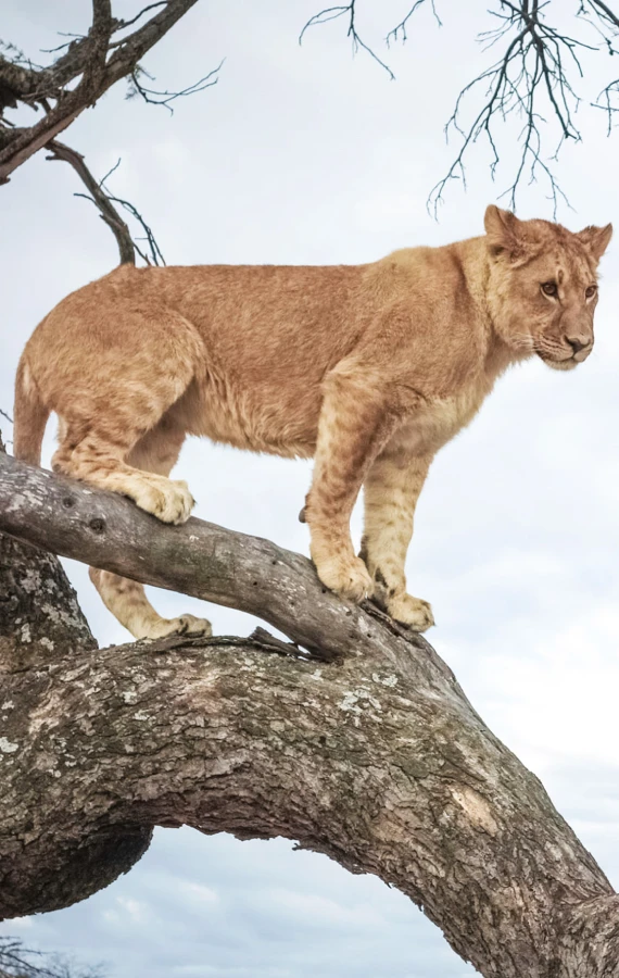 Searching the acacia branches for Manyara’s rare tree-climbing lions.